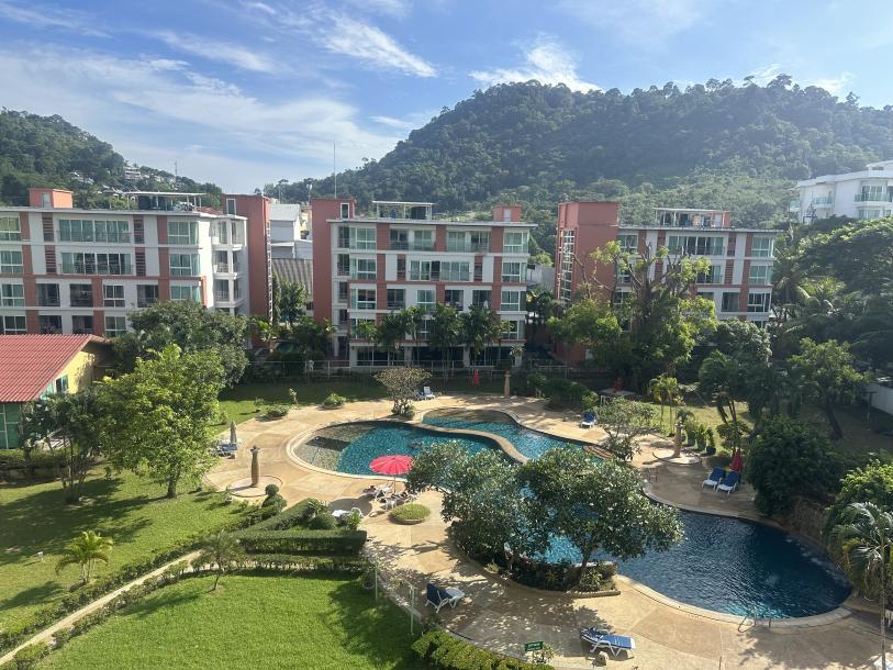 Phuket Palace - Cool One Bedroom 50 m2 Apartment for Sale in Patong, Located on Sirirat Rd., this one bedroom apartment is the perfect launching point for your Patong adventure. It is located convenient to shops and restaurants, and only a 10 minute walk from the beach.The lounge features a black leatherette sectional and bold color scheme. The kitchenette area has the essentialsâ€'a microwave and a refrigerator. The bedroom has built-in wardrobes and a spacious kingsized bed.The complex has security and 2 communal pools onsite, surrounded by a large, pleasant garden and plenty of room for lounging.- * Living Room- * Water Heater- * Dining Room- * Air-conditioners- * Bathrooms Ensuite- * Inland- * Car Port- * Western Kitchen- * Built in wardrobe- * Balcony- * Mains Water- * Internet / TV / Phone- * Swimming Pool- * Contemporary- * Secure Estate- * Parking Space