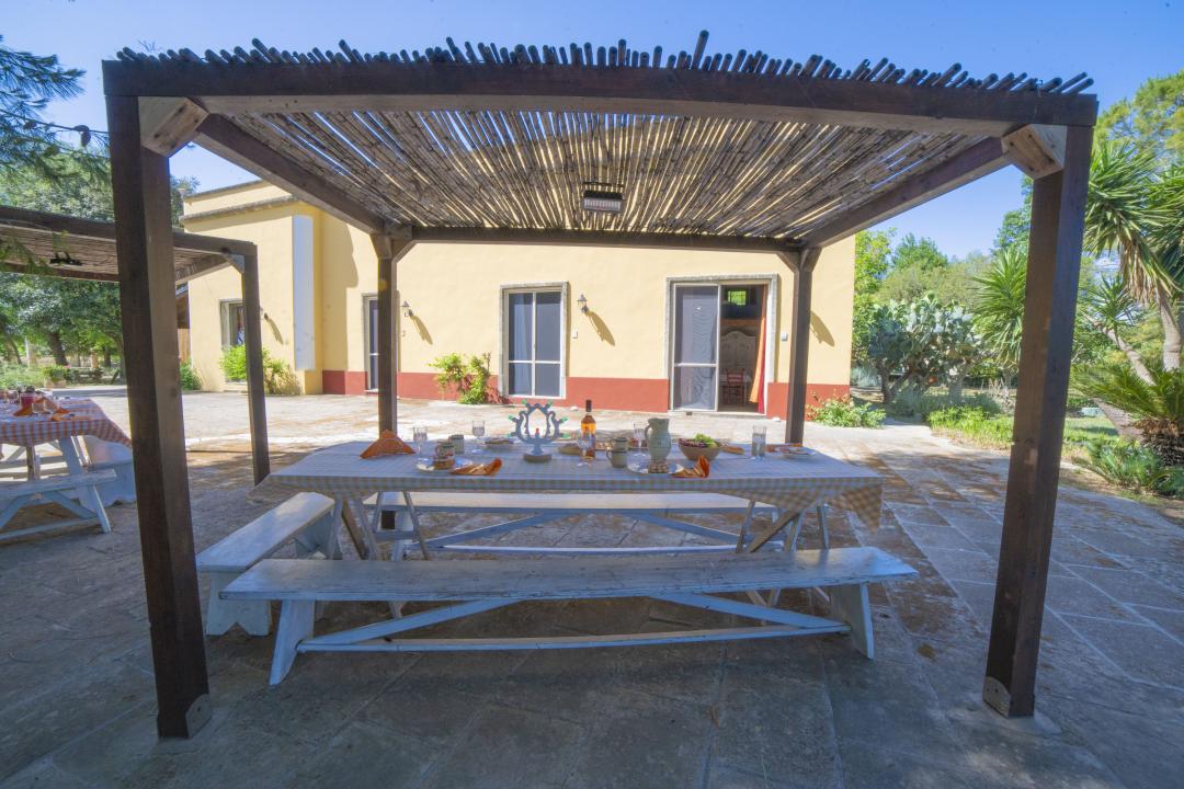 De landelijke boerderij is gelegen in het zonnige platteland van Salento, omringd door 4 hectares tuin. Het bevindt zich dicht bij de prachtige Salento-stranden en de charmante stad Lecce.